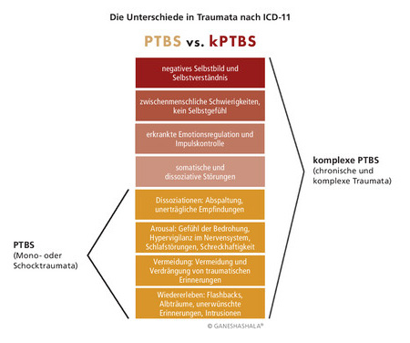 Bei Erwähnung von chronischem oder komplexem Trauma ist mit ausgeprägten körperlichen Beschwerden, wie Somatisierungen, Autoimmunerkrankungen und Entzündungen im Körper zu rechnen. Schwierigkeiten bei der Regulation von Emotionen und in zwischenmenschlichen Beziehungen bleiben ohne Behandlung sogar dauerhaft bestehen.