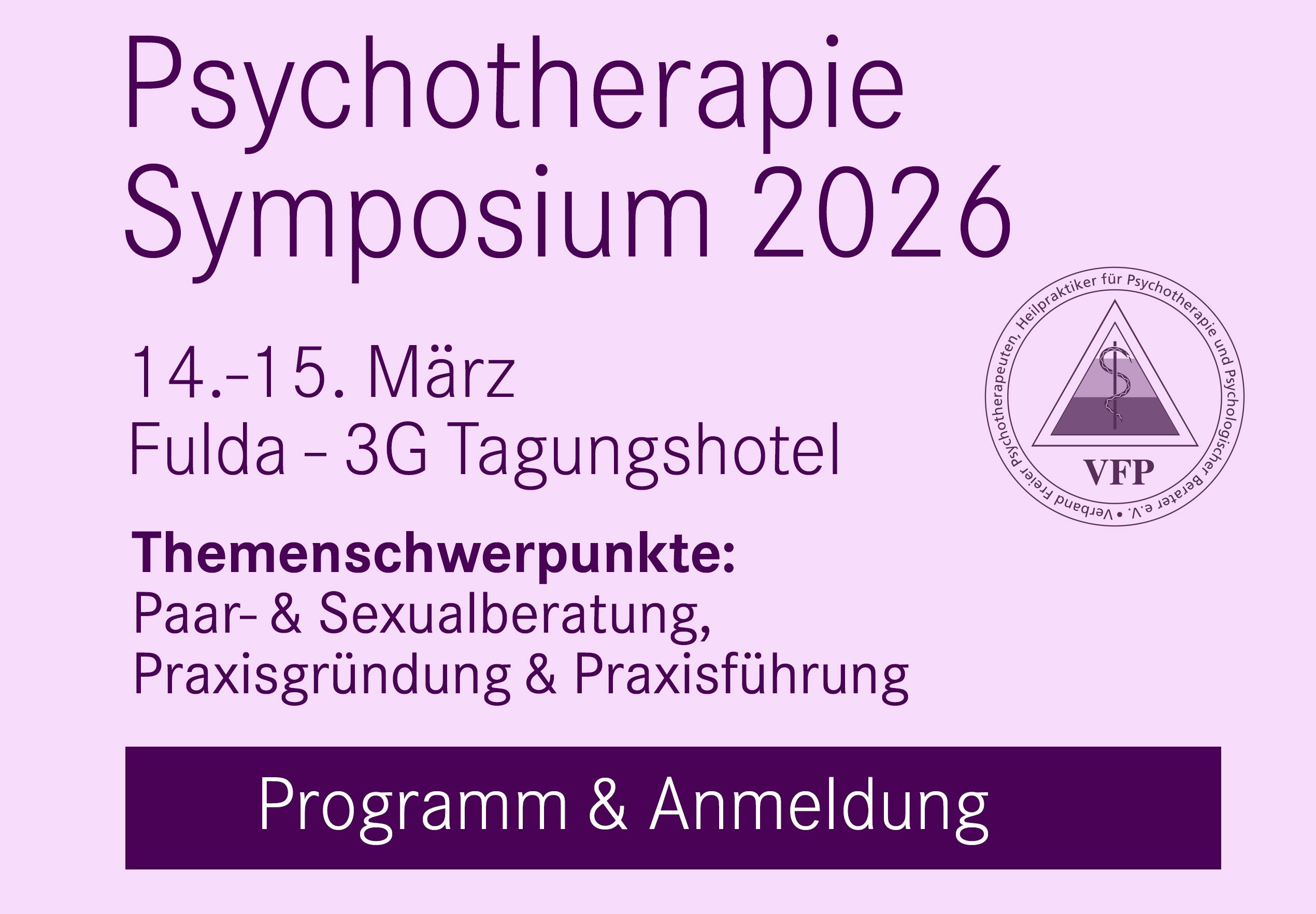 - Psychotherapie-Symposien, die zweimal jährlich an wechselnden Orten des Bundesgebietes stattfinden: Kostenlose Vorträge und vergünstigte Workshops.